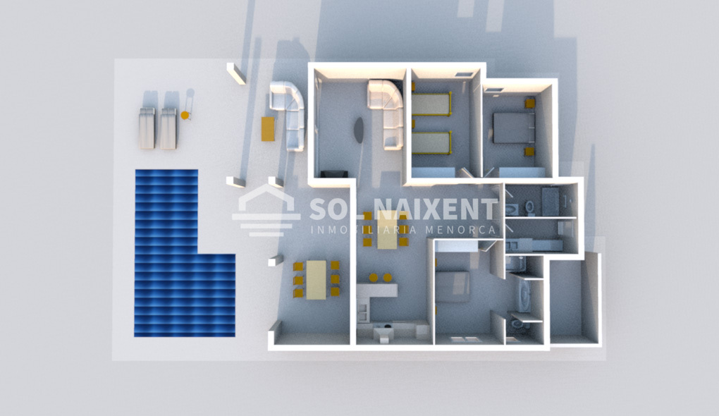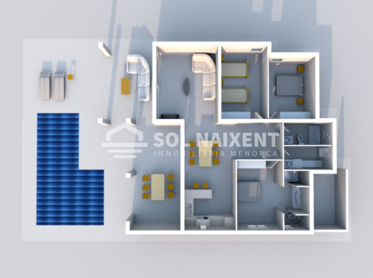 Situado en una de las mejores y mas valoradas de Menorca, esta propiedad cuenta con más de 800 m2 de solar y 160 m2 útiles. Se divide en salón comedor, cocina, tres habitaciones, dos baños y a destacar una gran terraza con piscina y barbacoa con unas vistas impresionantes.