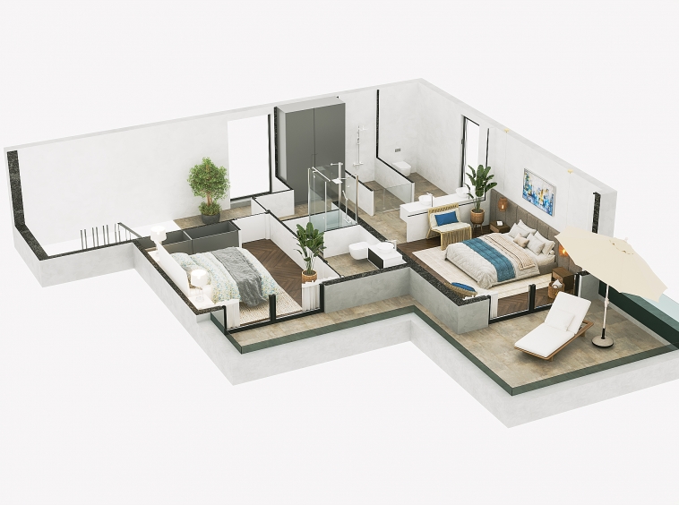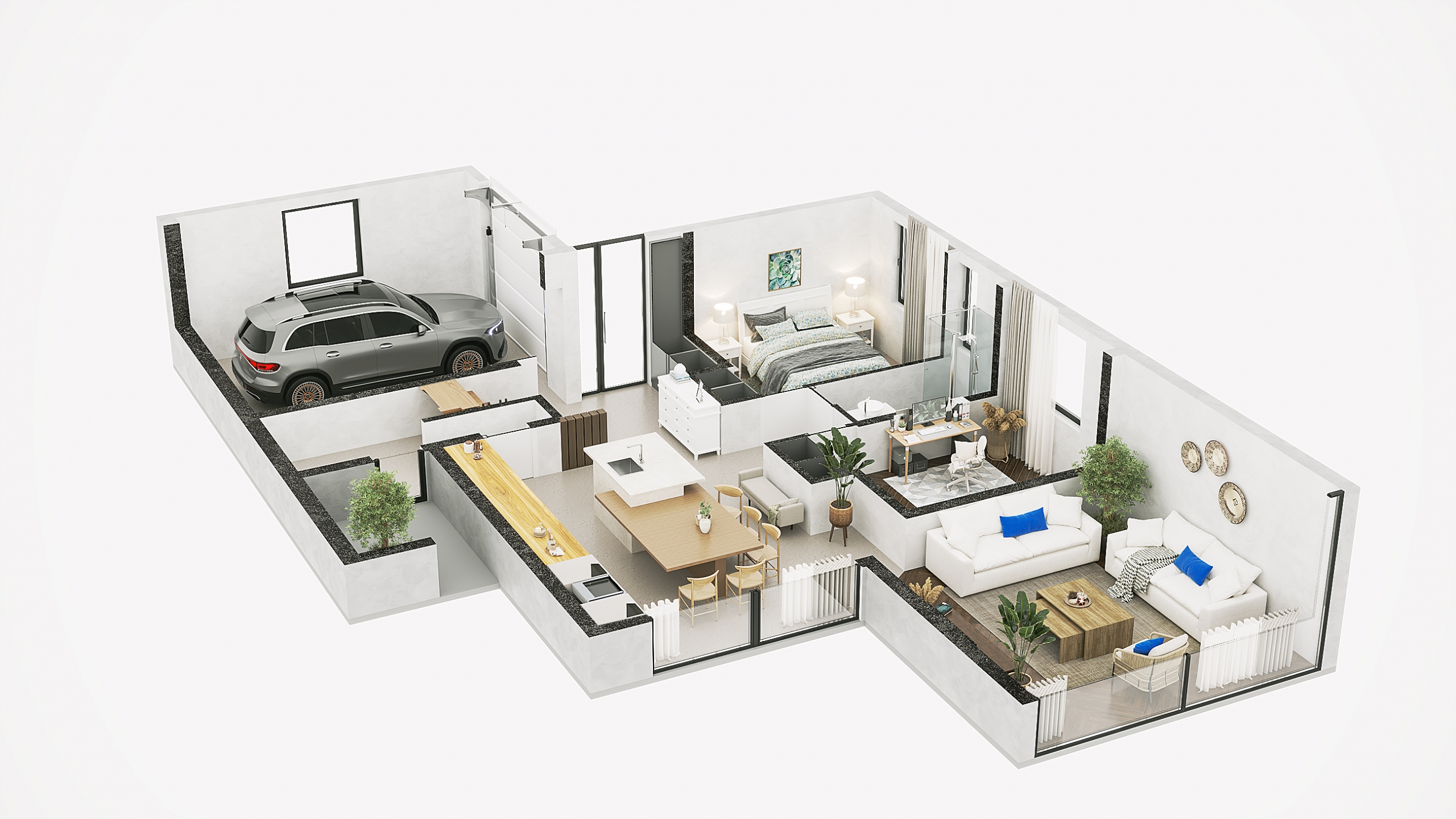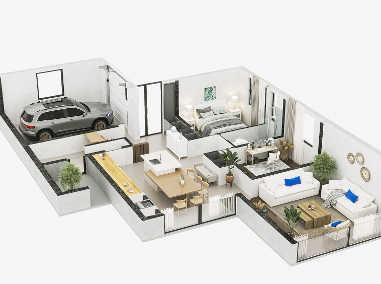 Esta vivienda constará de 3 habitaciones, 2 baños y 1 lavadero.