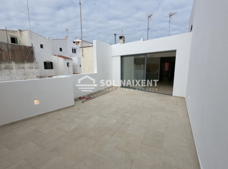 Amplia y céntrica casa totalmente reformada situada en primera planta con entrada independiente en Ciutadella. Consta de 98 m2 construidos que se distribuyen en 2 habitaciones dobles, 1 baño completo, salón comedor, cocina abierta. Además dispone de un amplio patio de 35 m2. Muy buena ubicación a sólo 20 metros del casco antiguo de Ciutadella. Derecho a vuelo.